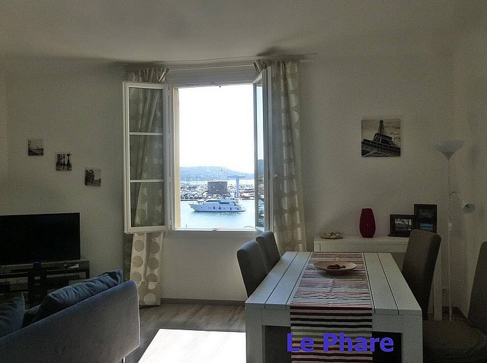 Air-conditioned apartment on the 3rd floor, ideally located on the old port of Saint Tropez, renovated. Breathtaking view of the port, the pier, the sea and 100 meters from the famous Sénéquier bar-restaurant: Entrance, Living room opening onto the sea, Fully equipped kitchen, Sleeping area, Shower room