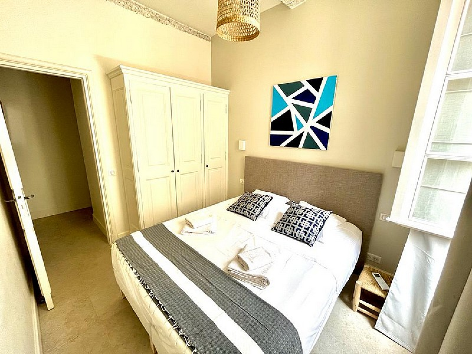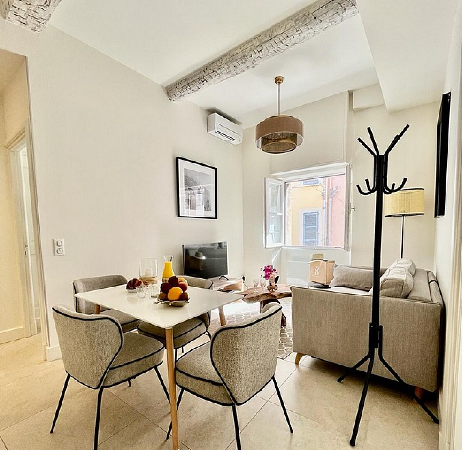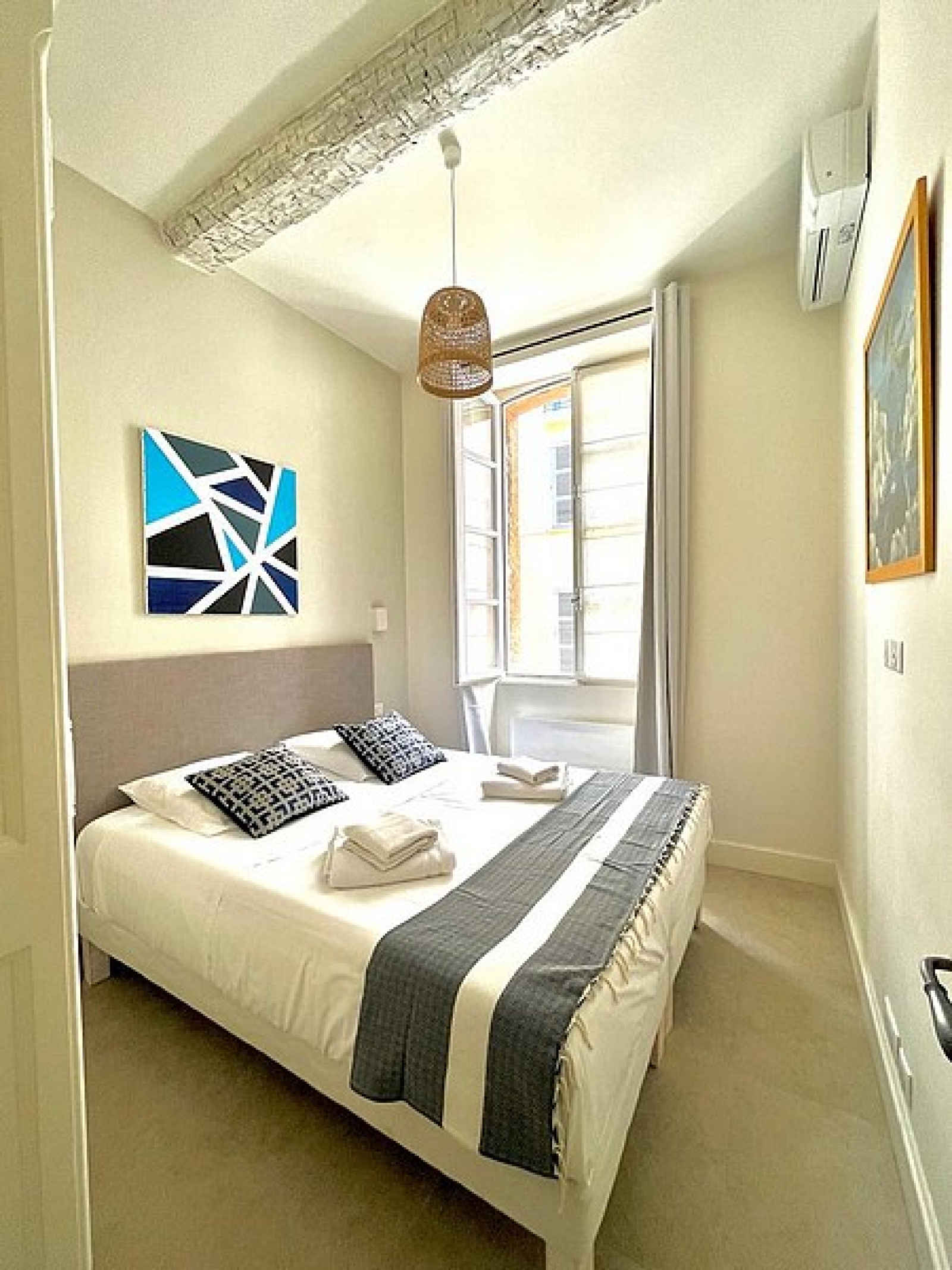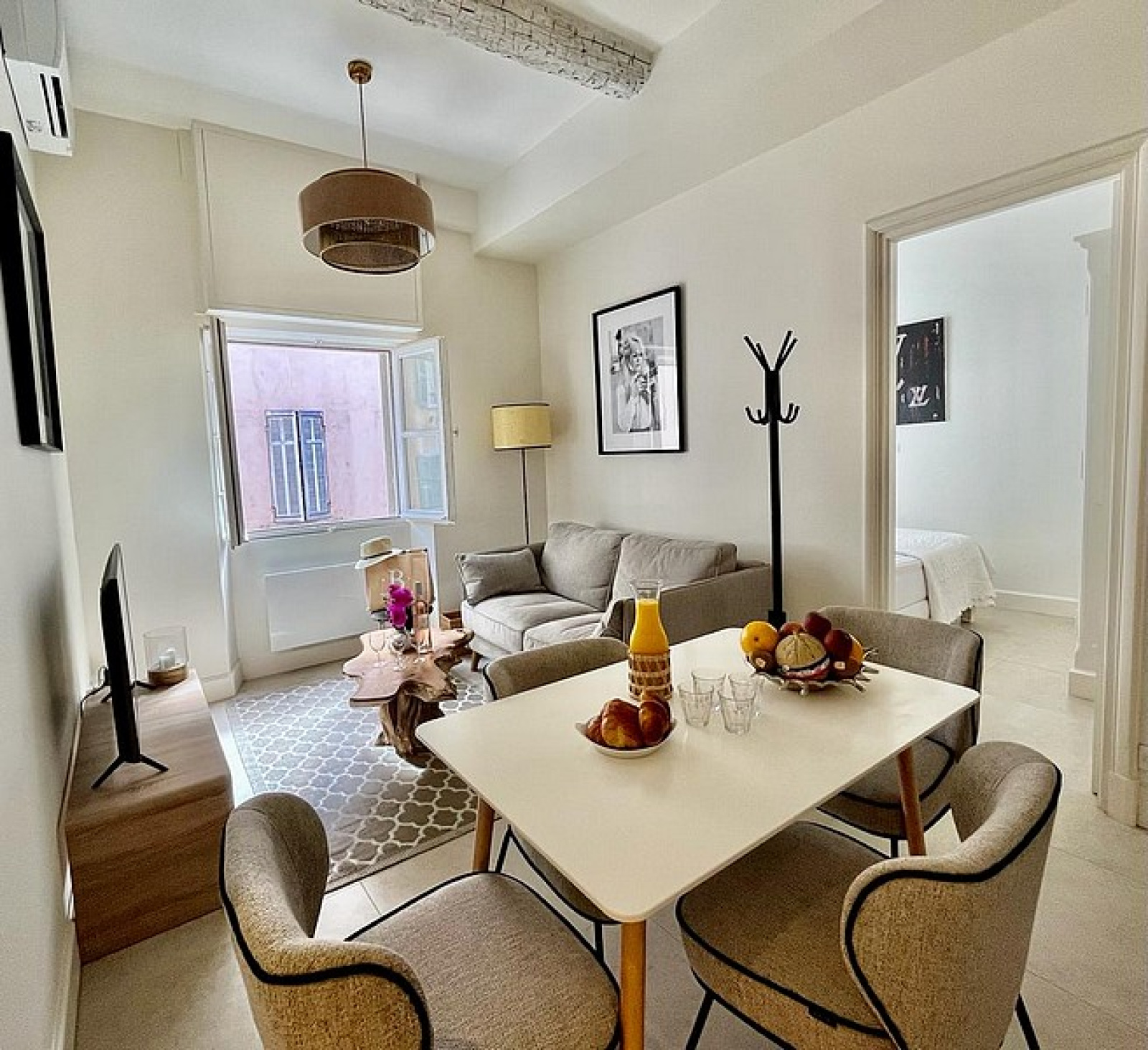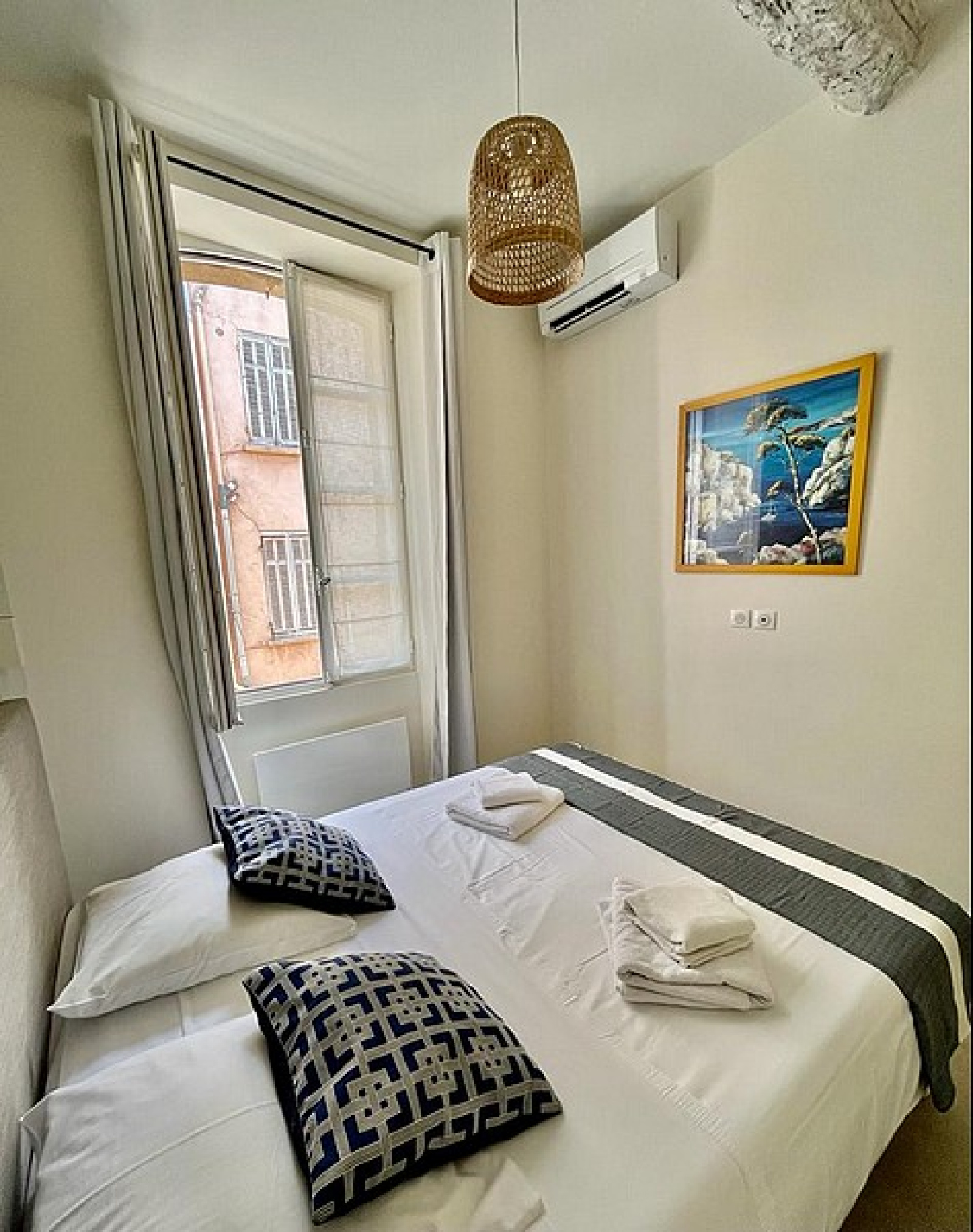 Bel appartement entièrement rénové au coeur du village et à 2 minutes du Port. Entrée avec Toilettes d'invités, Séjour avec Cuisine équipée, 2 Chambres avec 1 Salle de douches.