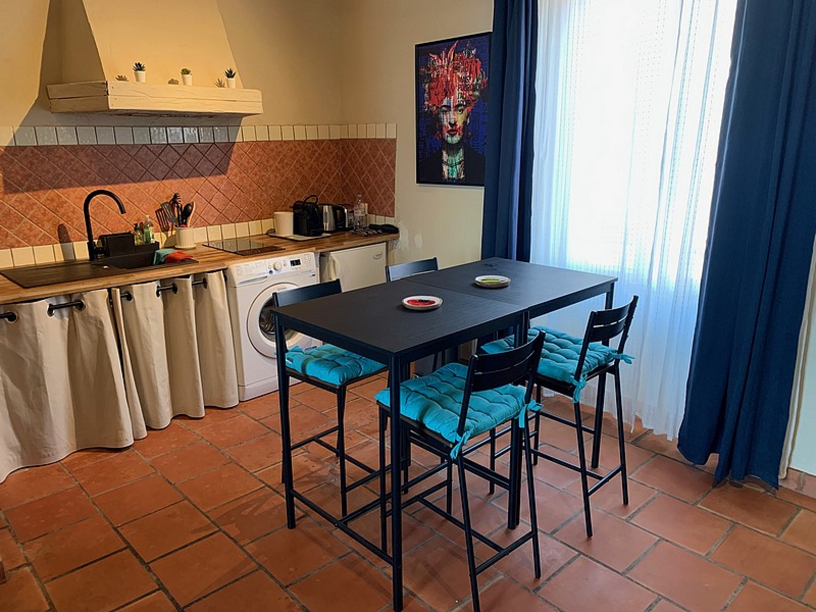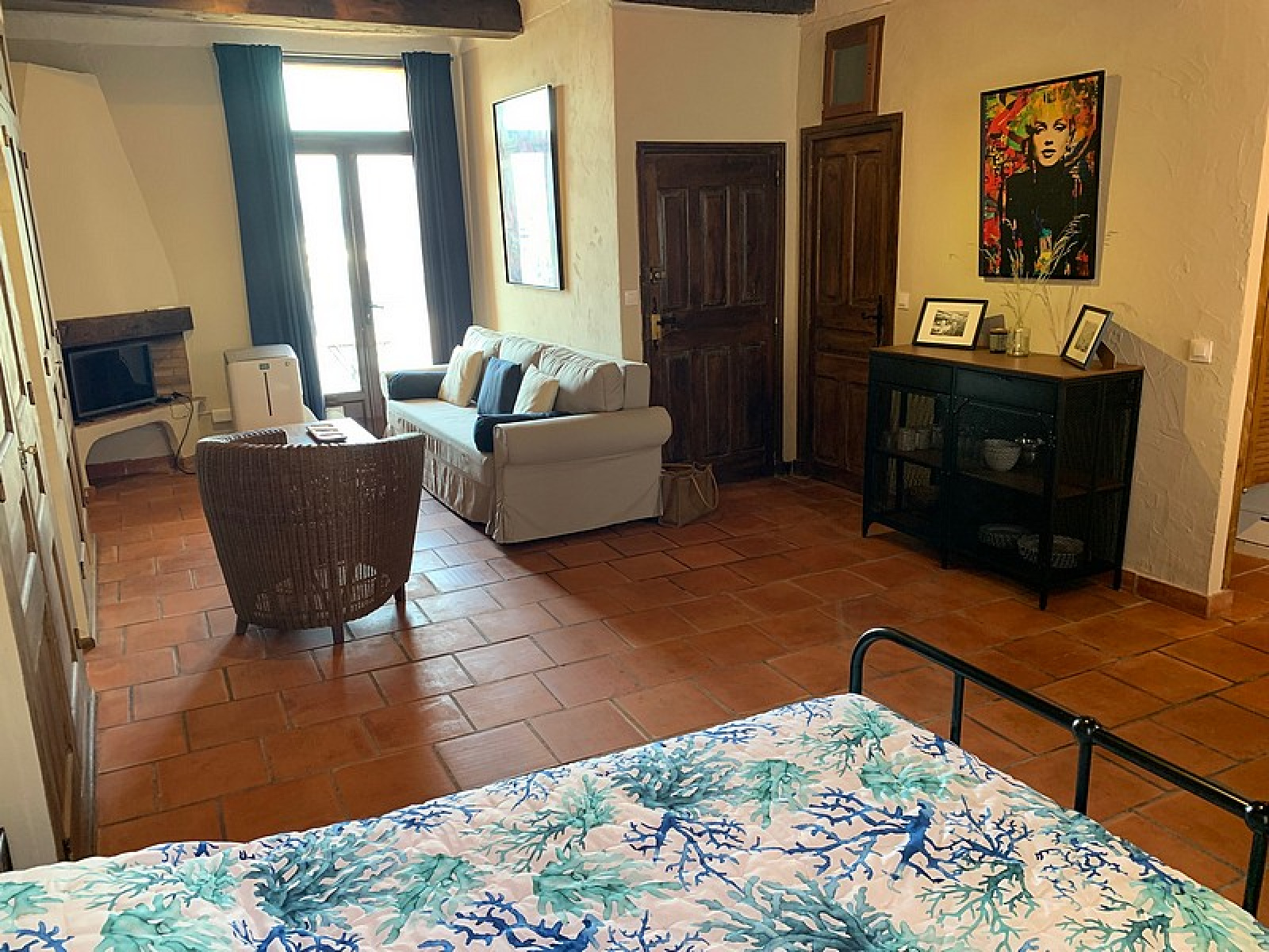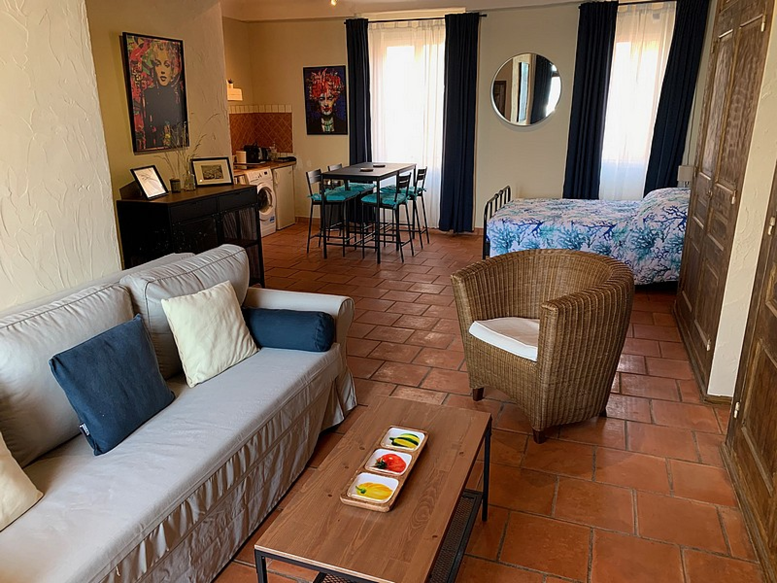 Studio on the port of Saint-Tropez: Living room, Equipped kitchen, Sleeping area, Shower room – Terrace on the port.
