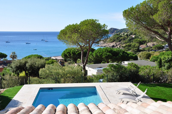 Magnificent sea views on Saint-Tropez gulf, for this family house: Large Living room, Dining room, Fitted Kitchen, Terrace with stunning views, 3 Air-conditioned Bedrooms, 1 Bathroom and 1 Shower room - Swimming pool 10x5 m, Garage.
