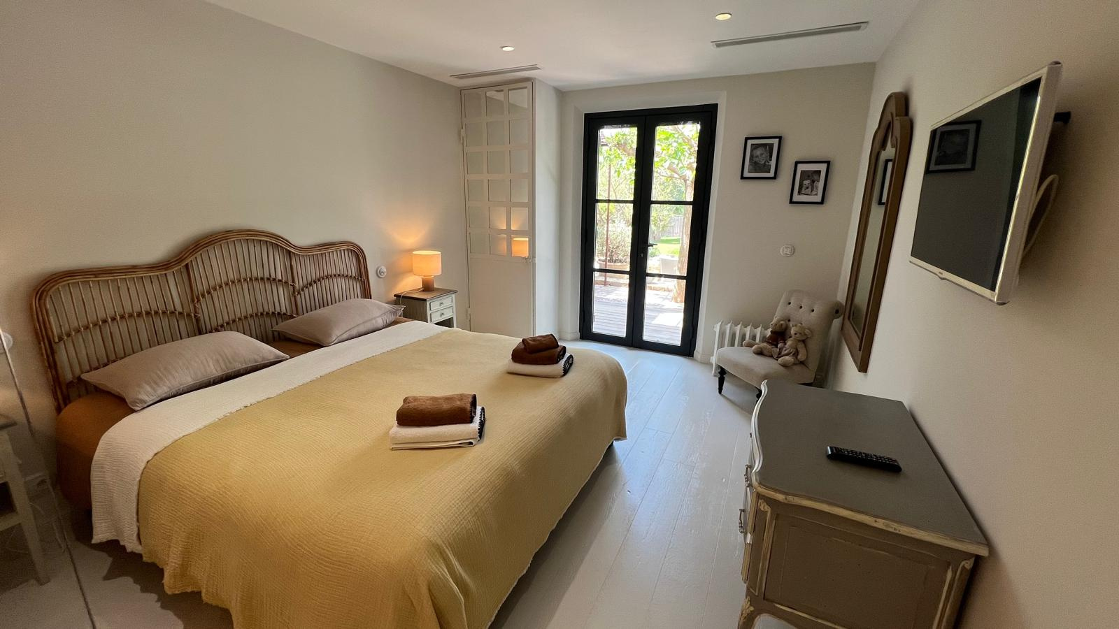 Located in a quiet area 3 km from Saint Tropez, this villa consists of: Large Living / Dining room, Equipped Kitchen, 1 Bedroom opening onto the garden with bath and washbasin, 1 Bedroom opening onto the garden with shower and washbasin, Separate Toilet , 1 Master Bedroom opening onto Terrace with bath, shower and toilet - Access to the first floor by lift or outside staircase, 2 Bedrooms opening onto Balcony with shower and toilet, 1 Bedroom with shower - 12x4m mirror Swimming pool, Parking for 2 cars.