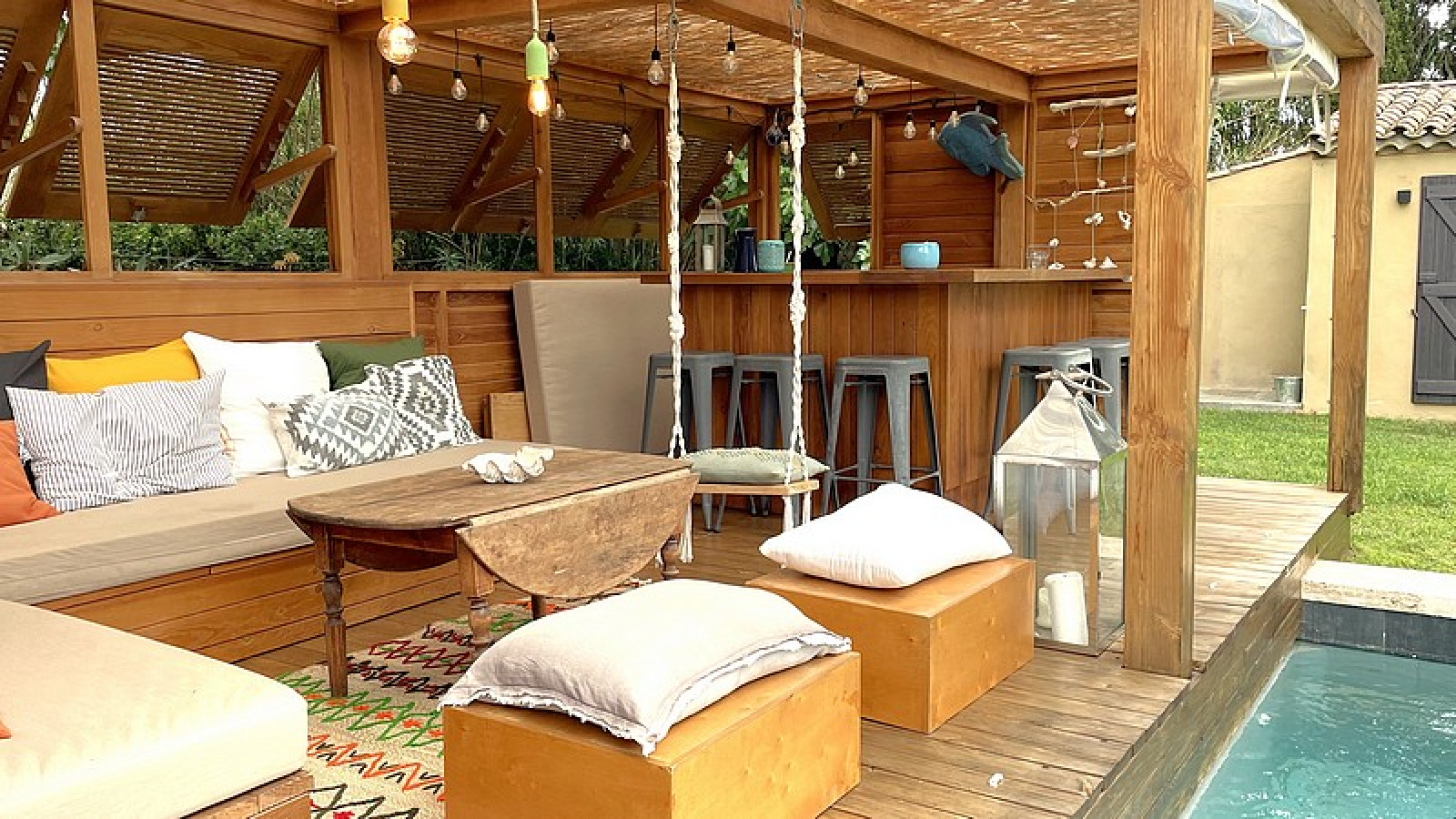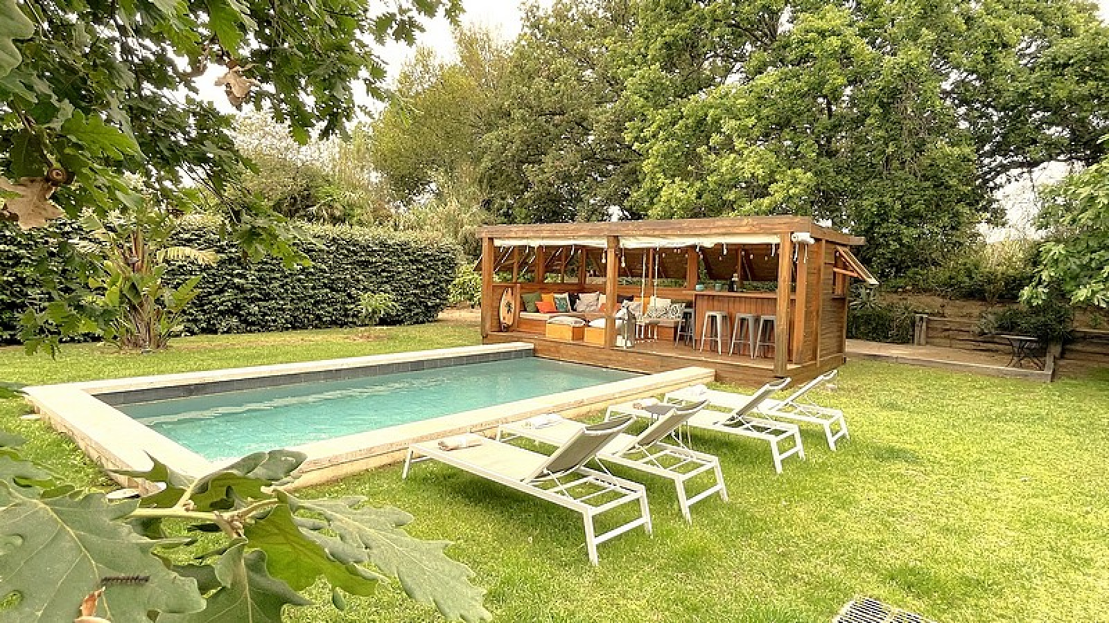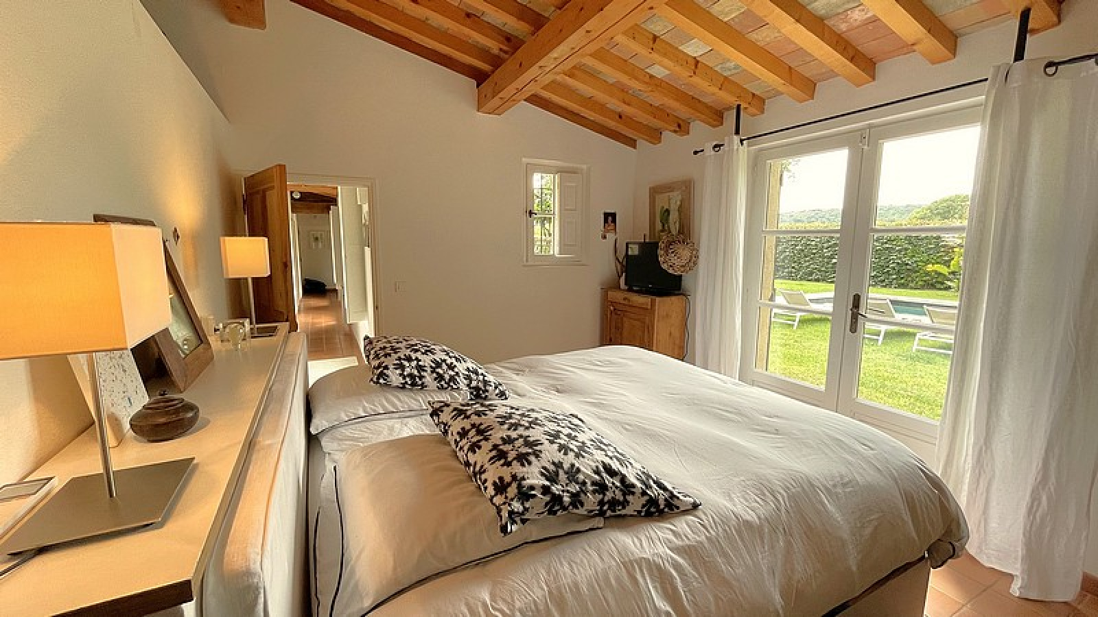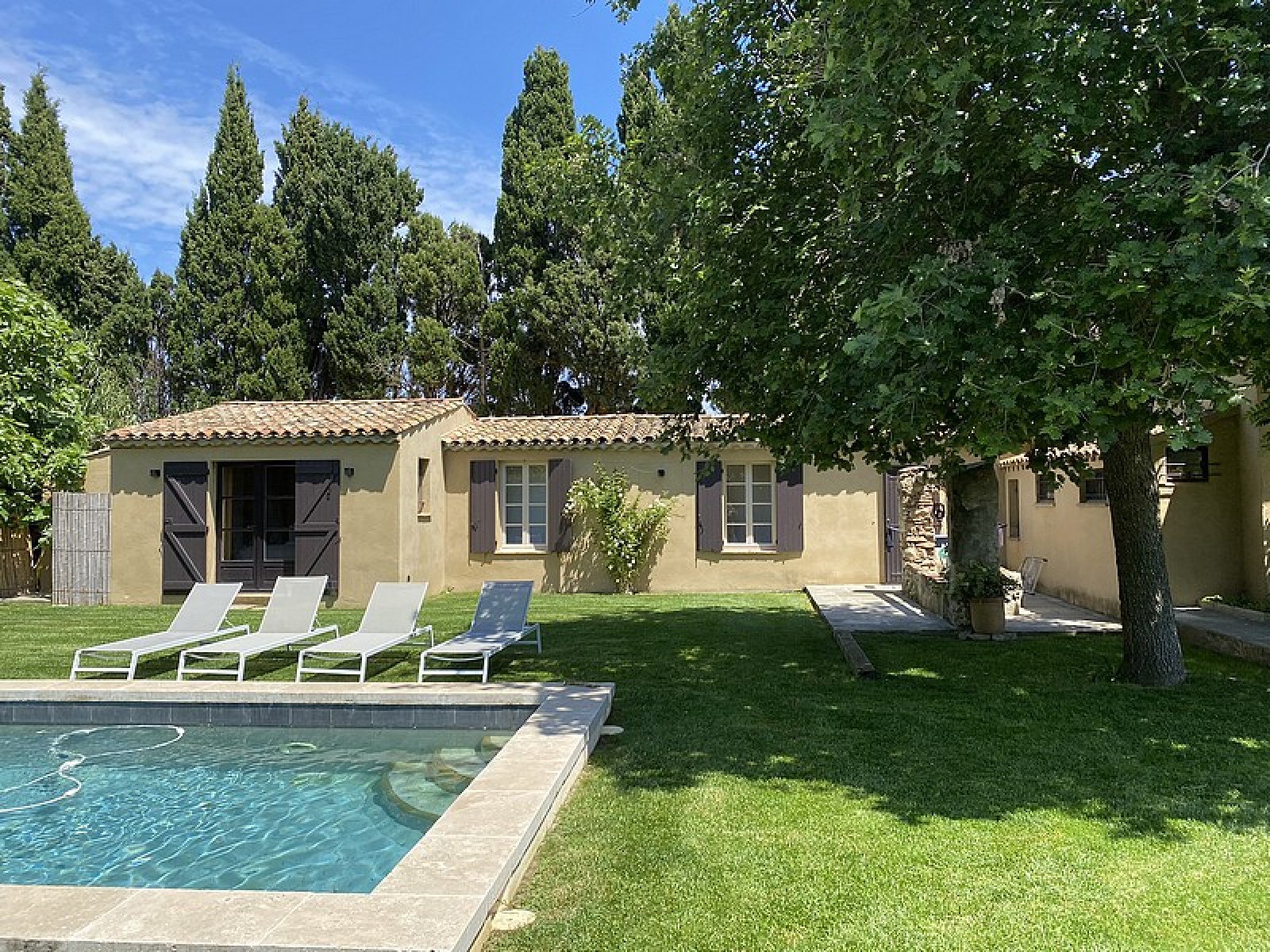 Entrance hall, Air-conditioned Living / Dining room, Equipped Kitchen, Guest Toilets, 1 Air-conditioned Master Bedroom with Bathroom and Shower, 2 Bedrooms with Bathroom or Shower room – Swimming pool, WiFi, Petanque court, Electric gate.
